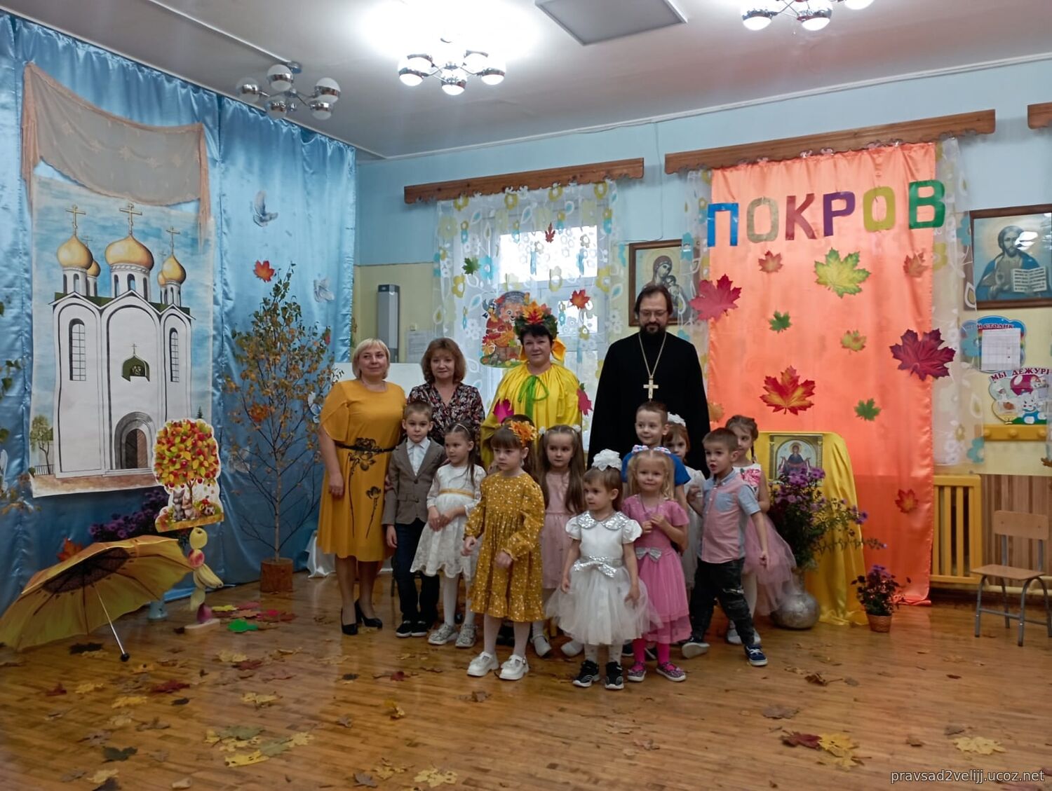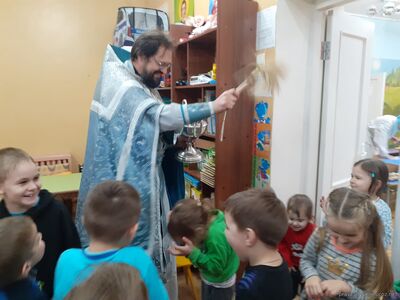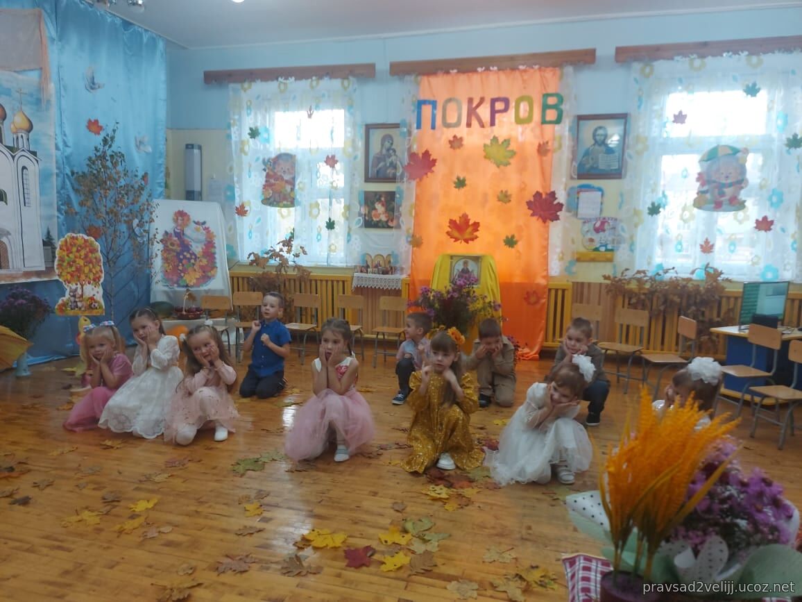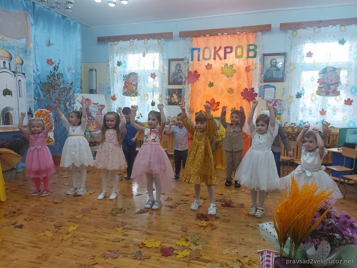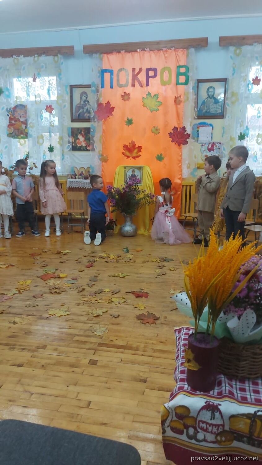 14 октября в детском саду радостно и празднично состоялся праздник, посвященный Покрову Пресвятой Богородицы! Вначале воспитанники посетили храм Трех Святителей, где за Божественной Литургией молились вместе с прихожанами, причащались и приняли участие в праздничном молебне. Далее, Духовник отец Александр посетил и окропил святой водой детский сад, побеседовал с детьми о празднике и с удовольствием принял участие в праздничном мероприятии в детском саду, пожелал всем присутствующим доброго здоровья и Покрова всем Пресвятой Богородицы.