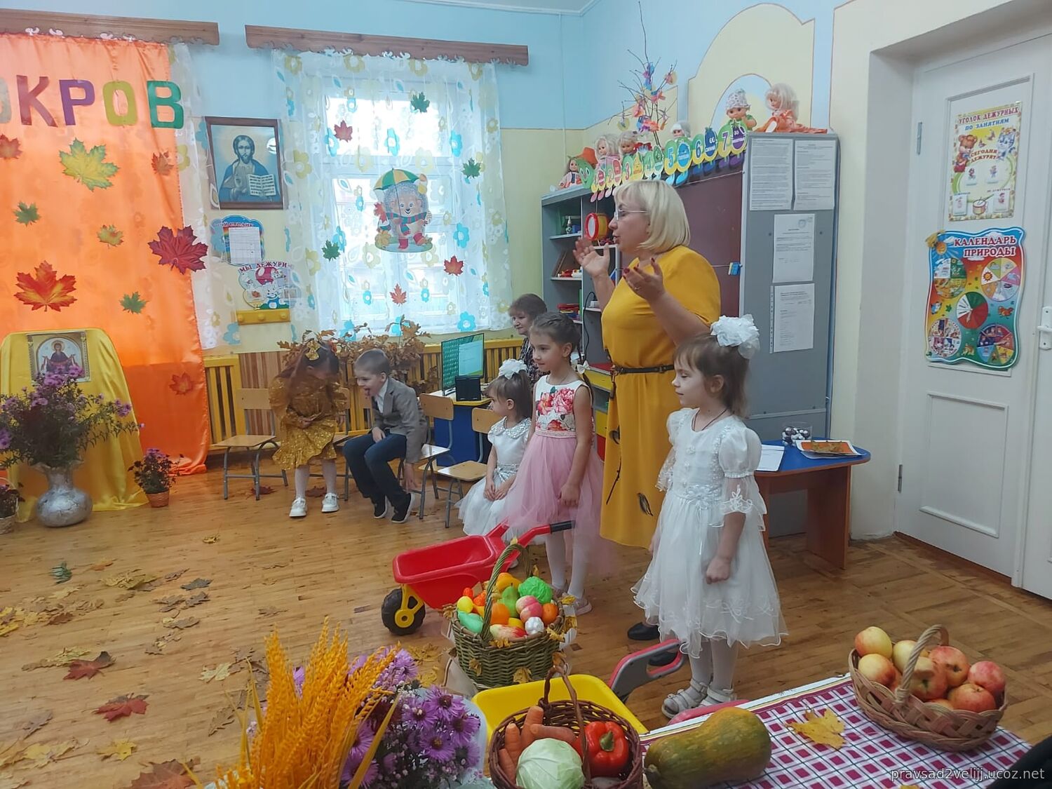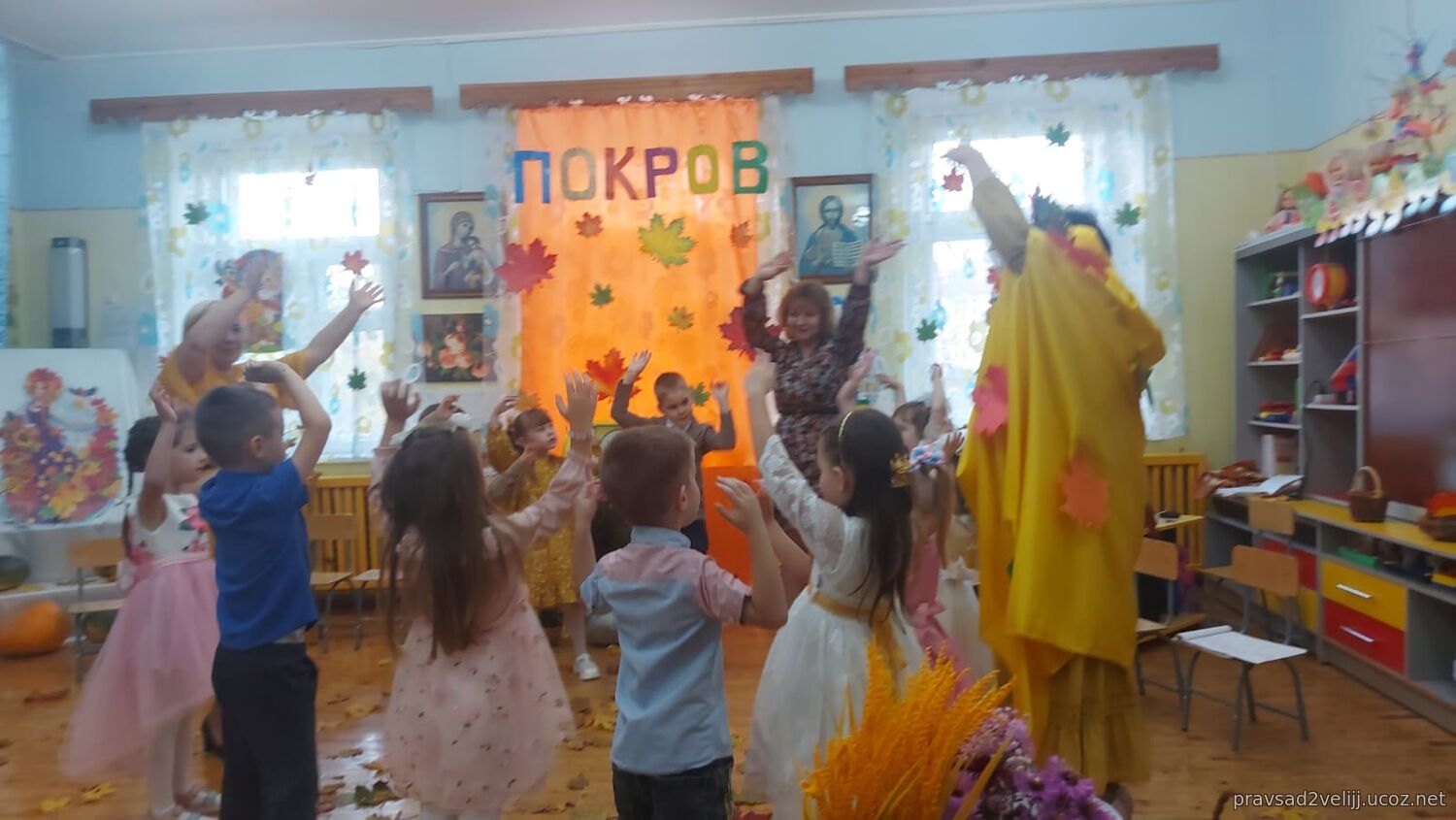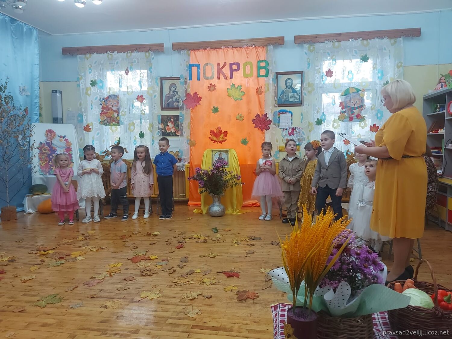 14 октября в детском саду радостно и празднично состоялся праздник, посвященный Покрову Пресвятой Богородицы! Вначале воспитанники посетили храм Трех Святителей, где за Божественной Литургией молились вместе с прихожанами, причащались и приняли участие в праздничном молебне. Далее, Духовник отец Александр посетил и окропил святой водой детский сад, побеседовал с детьми о празднике и с удовольствием принял участие в праздничном мероприятии в детском саду, пожелал всем присутствующим доброго здоровья и Покрова всем Пресвятой Богородицы.